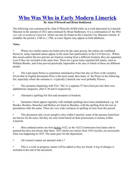 Pdf Who Was Who In Early Modern Limerick Brian Hodkinson Academia Edu